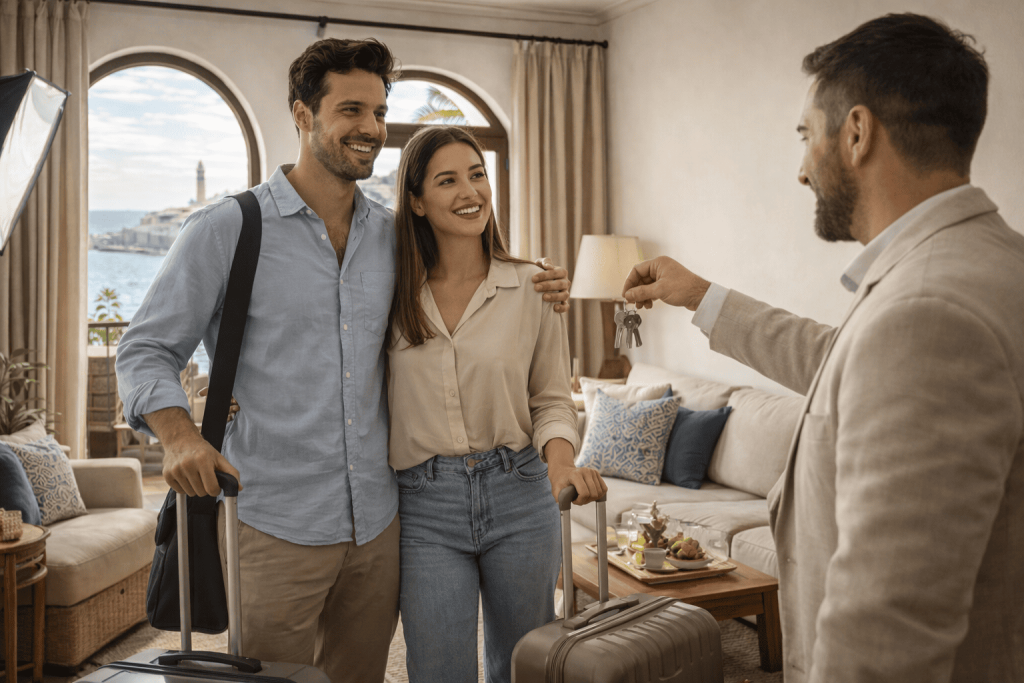 Our partners will take care of welcoming clients, showing them around and handing over the keys upon their arrival at your property.